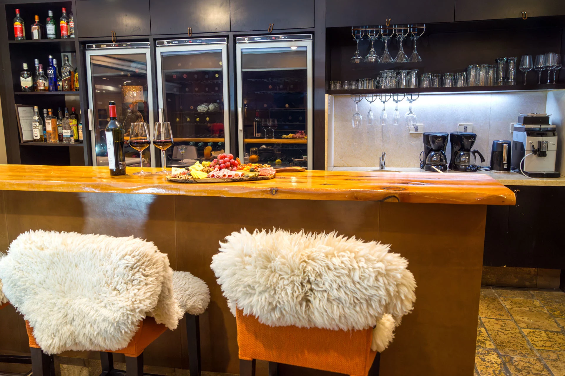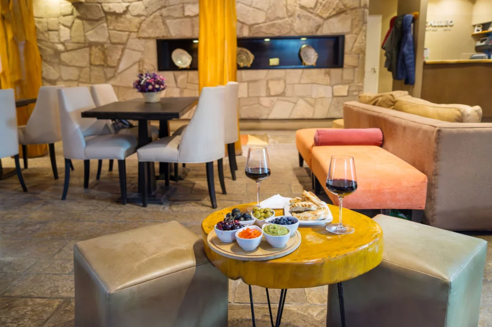 Durante la temporada de invierno, nuestro Wine Bar se convierte en el lugar ideal para relajarse después de un día en la montaña. Al regresar del Cerro Catedral, muchos huéspedes eligen pasar por el living del hotel para disfrutar del tradicional after ski, un momento perfecto para descansar, entrar en calor y compartir la experiencia del día.